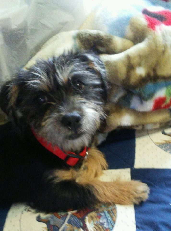Roxy, my dog, is a Schnauzer, Dachshund, and Terrier mix, who came to my late husband, Steve, and I as a rescue dog. Roxy’s first owners abused her, and a big dog got her in its mouth, shook her, and injured her badly. This first owner left injured Roxy on the step of a lady’s home. This lady happened to work for a veterinarian’s office so she fixed Roxy up and kept her as long as she could. Later, when this woman was eight-months pregnant, she had to go on bed rest and could not care for Roxy and her two big Mastiff dogs.